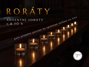 Rorátní mše svatéK adventní době neodmyslitelně patří rorátní mše svaté. V sobotu 6. 12. 2025 u nás můžete navštívit první z nich a dále také v sobotu 13. 12. a 20. 12. 2025. Po každé rorátní mši svaté se s vámi rádi uvidíme ve farní kavárně na snídani.