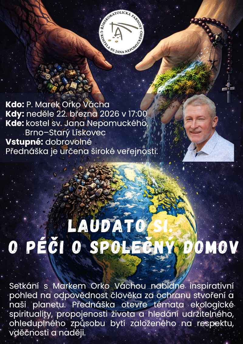Setkání s Markem Orko Váchou nabídne inspirativní pohled na odpovědnost člověka za ochranu stvoření a naši planetu. Přednáška otevře témata ekologické spirituality, propojenosti života a hledání udržitelného, ohleduplného způsobu bytí založeného na respektu, vděčnosti a naději.