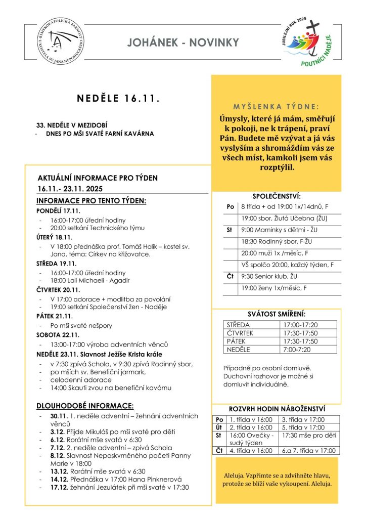 Náboženství 2. třída 18. 11. 2025 16:00 - 17:00